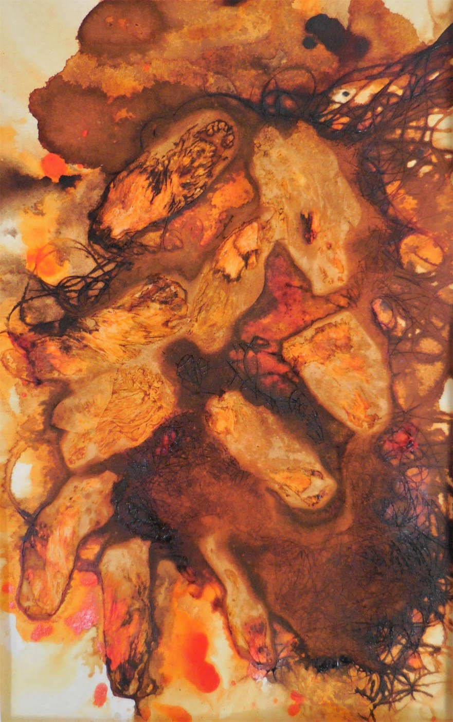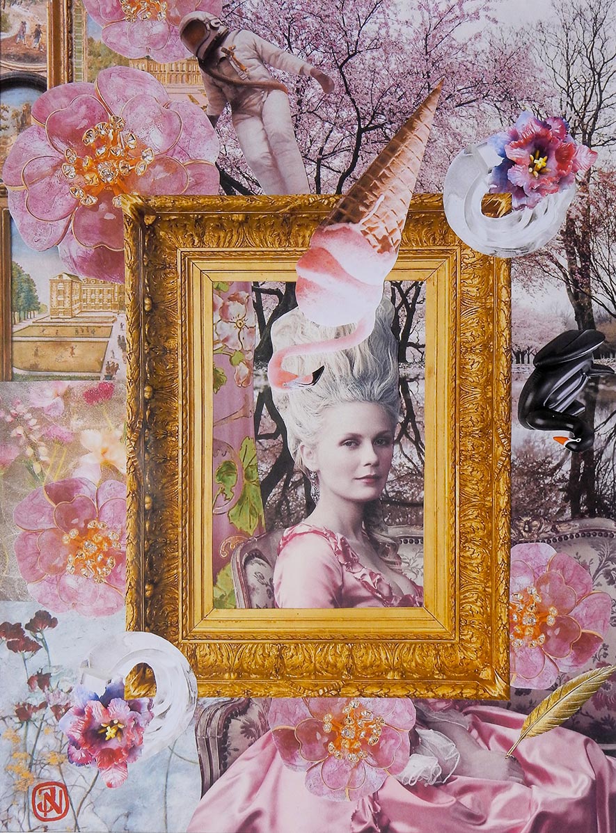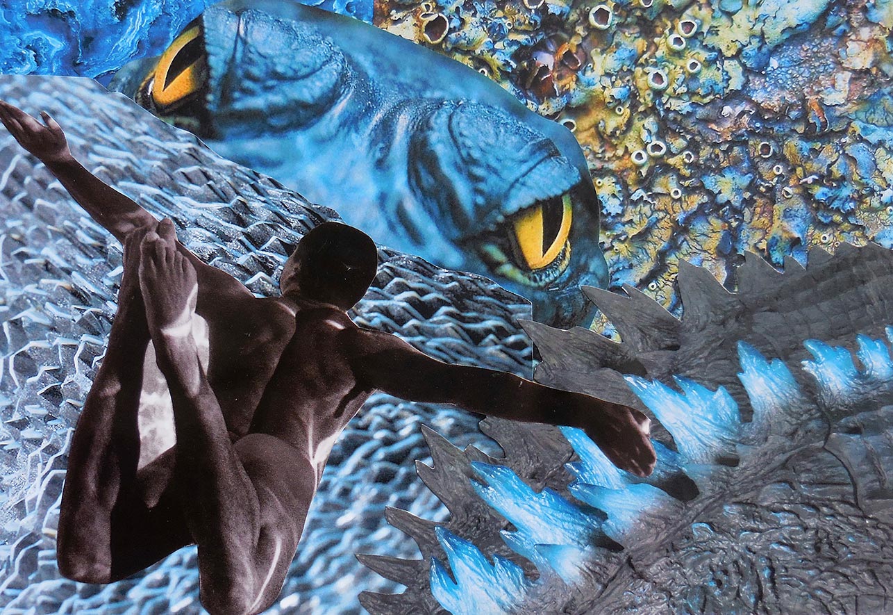 À la lisière, jouer entre les limites de deux microclimats. Celui d’un lieu ouvert où le soleil arrive jusqu’au sol entouré d’une zone boisée. Présentation d’empreintes et impressions brou de noix, un travail sur le bois. Triptyques. /Photographies d’une nature ouverte et changeante. Collages papier, quand votre regard raconte une histoire. Ont été mes moyens d’expression pour cette exposition.